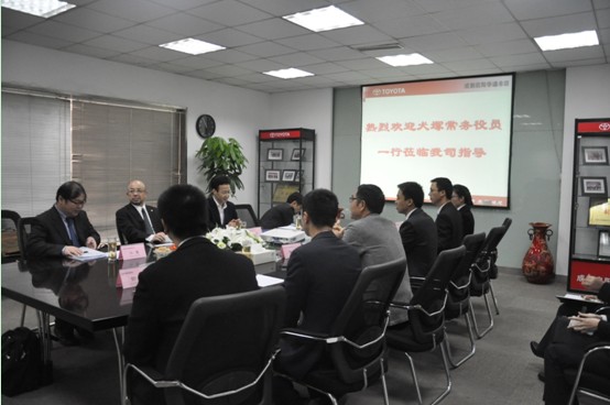 ??? 11月20日上午,,,,,丰田自动车株式会社常务役员犬冢力、一汽丰田汽车销售有限公司石井部长、西部大区课长江涛等一行四人亲临威廉希尔·(William Hill)中文官方网站汽车旗下分公司华通丰田旅行指导。。。。。。