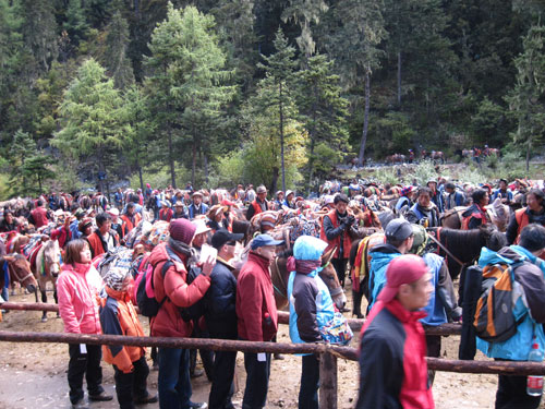 ??? 回归的途中,,,,,很是难堪的我们遇到牦牛群,,,,,它们正通过公路由夏日牧场迁徙到冬季牧场。。。。。藏民们开着拖沓机带上行李举家搬家。。。。。