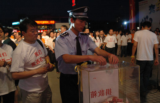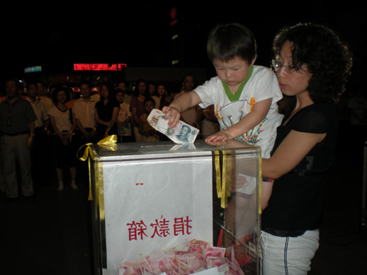 ? 此时现在,,,,,,,,整个会场化作一片泪水磅礴的爱心天堂,,,,,,,,情暖人世,,,,,,,,鹤发苍苍的老人来了,,,,,,,,活动蹒跚的孩子来了,,,,,,,,为了失去孩子的母亲,,,,,,,,为了失去母亲的孩子,,,,,,,,他们送来了节约下来的生涯费和储备罐里的零花钱。。。。。。。。感动,,,,,,,,除了感动,,,,,,,,照旧感动!
