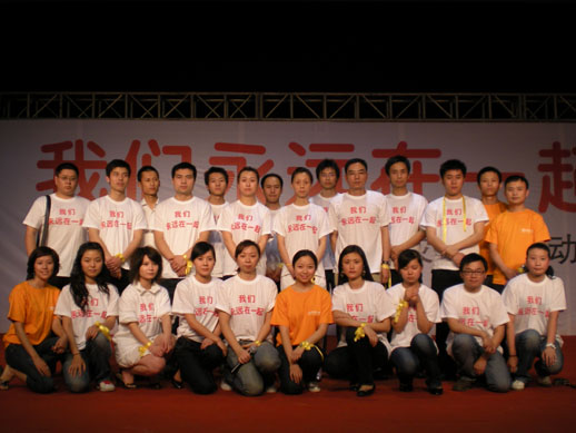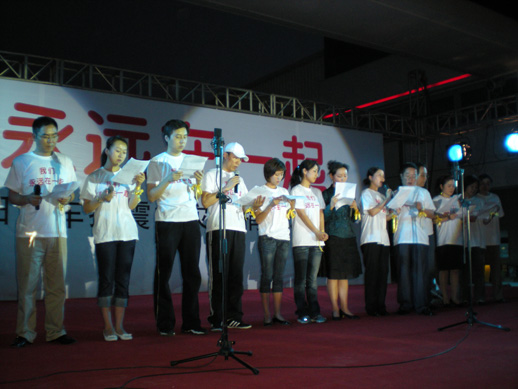 ? “轻轻地捧起你的脸,,,,,,,,为你把眼泪擦干,,,,,,,,这颗心永远属于你,,,,,,,,告诉我不再孑立……”陪同着《让天下充满爱》歌声的响起,,,,,,,,象征着爱与温暖的黄丝带在现场随风飘曳,,,,,,,,每位在场的人手牵手,,,,,,,,心连心,,,,,,,,配合为灾区同胞祈福,,,,,,,,逝者已逝,,,,,,,,生者顽强,,,,,,,,祝愿中华子女早日战胜地动灾难,,,,,,,,灾区同胞早日重修优美家园。。。。。。。。