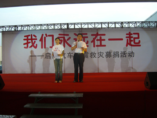 五月十九日晚七点三十分,,,,,,,,随着主持人这句话在一阵悲哀肃穆的气氛中,,,,,,,,“我们永远在一起”——威廉希尔·(William Hill)中文官方网站汽车大型抗震救灾募捐运动正式拉开帷幕。。。。。。。。双流县民政局慈善总会、威廉希尔·(William Hill)中文官方网站汽车的数十家相助单位、宽大车主、媒体相助同伴以及全体员工及其眷属、朋侪等配合加入了此次爱心运动。。。。。。。。