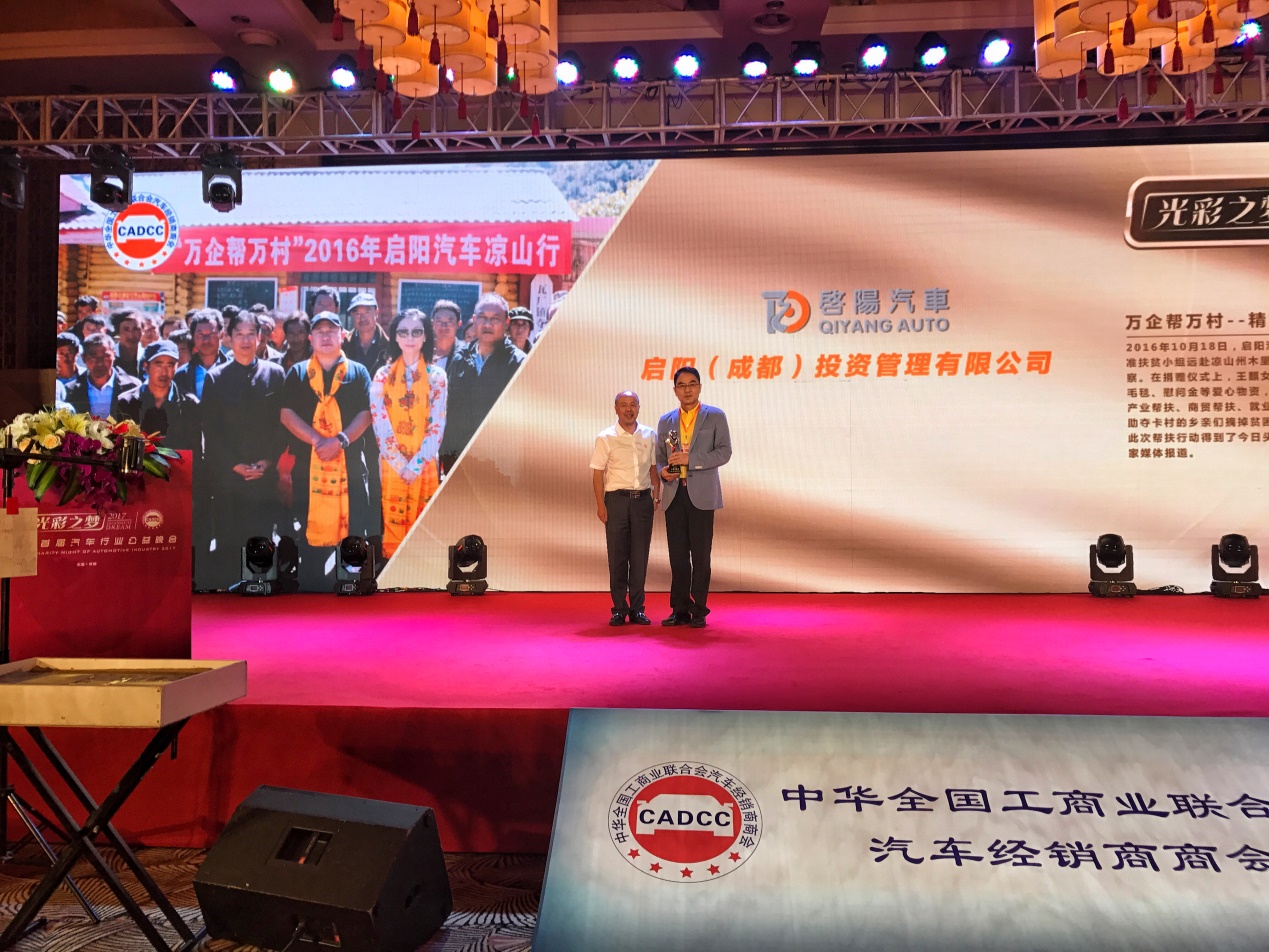 ????? 几天之前,,,,,,由天下工商联经销商商会举行的首届中国“色泽之梦”汽车行业公益晚会上,,,,,,威廉希尔·(William Hill)中文官方网站汽车集团依附“万企帮万村”精准扶贫行动典范案例,,,,,,荣获“公益撒播奖”。。。。。。。这是天下工商联经销商商会揭晓的首个公益项目奖项。。。。。。。奖项的评选更是由行业专家在仔细相识案例、强烈讨论、认真筛选事后脱颖而出的,,,,,,强调企业在做公益项目时应形生长效机制,,,,,,需要一连性地投入。。。。。。。作为四川地区该奖项的唯一获得者,,,,,,可见威廉希尔·(William Hill)中文官方网站汽车集团在“万企帮万村”精准扶贫方面所做的起劲与效果,,,,,,受到了社会各界的一致认可。。。。。。。